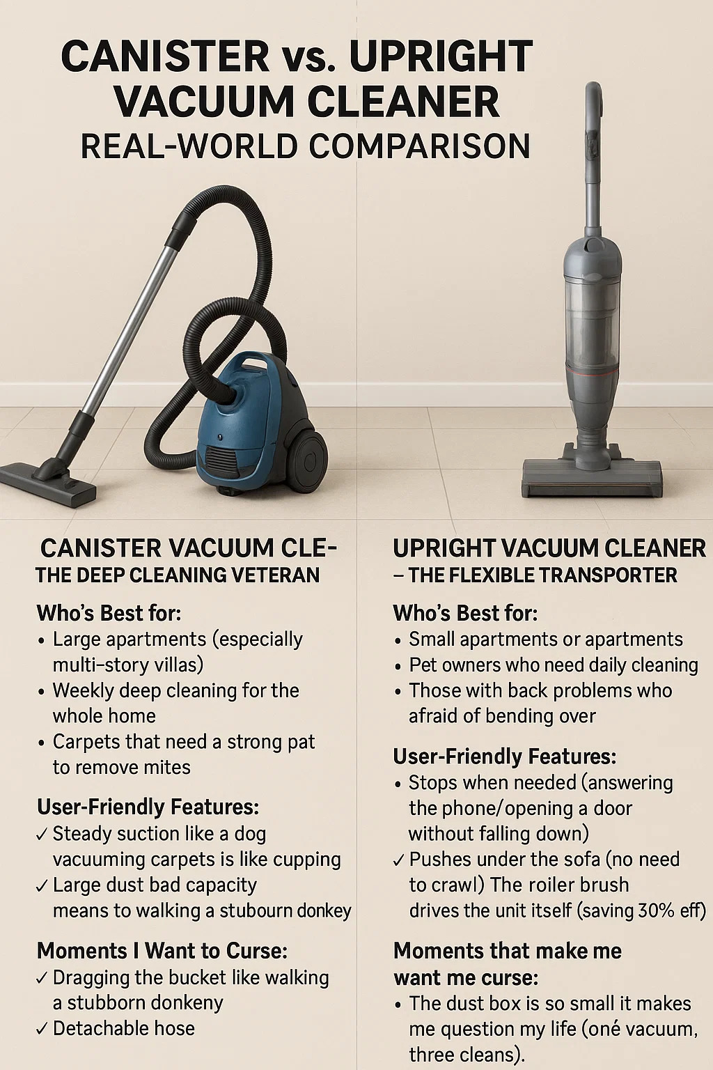 กระป๋องเทียบกับตัวตรง เครื่องดูดฝุ่น การเปรียบเทียบในโลกแห่งความเป็นจริง